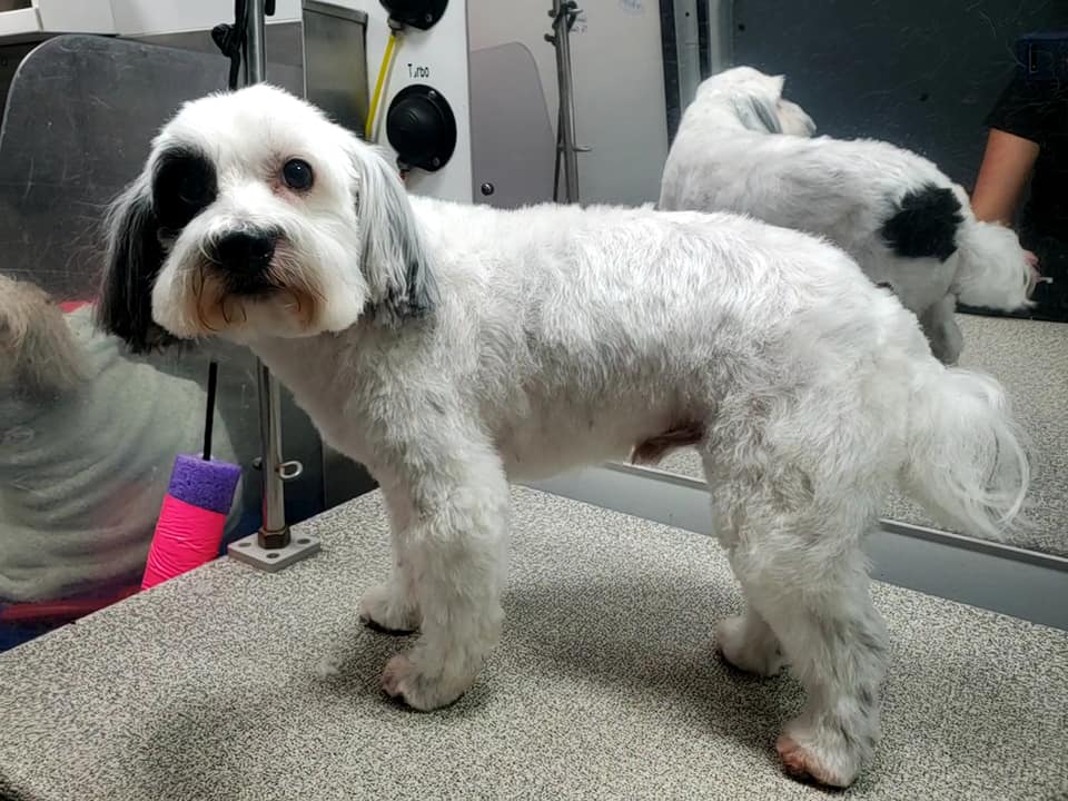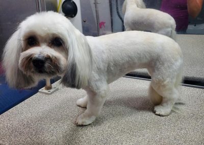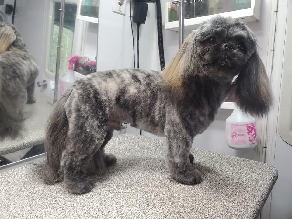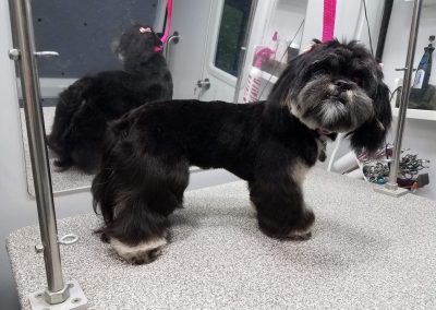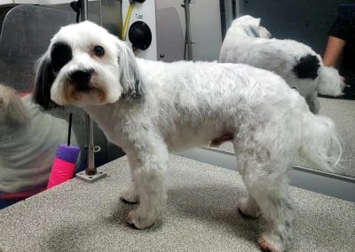 | Use of velocity blow dryer to fluff hair perfectly, if pet allows. Gently dry with hair dryer for fearful pets. | Partial or full body hair cut in a style agreed upon to best suit the needs of the owner and best interest of the pet. | Nails clipped as close to the quicks as possible to keep nails healthy and feet comfortable. |